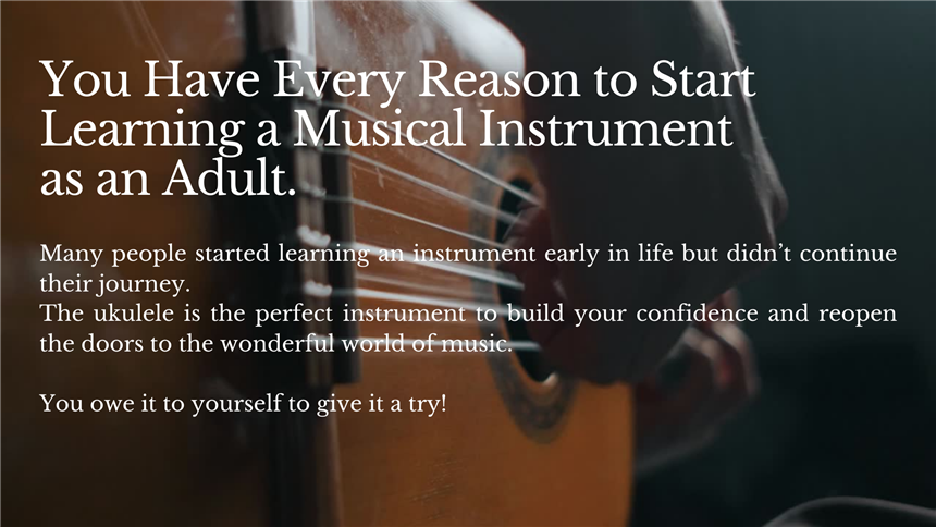The ukulele is the perfect first instrument. It allows you to make real music quickly and progress to the other instruments with ease as you grow.